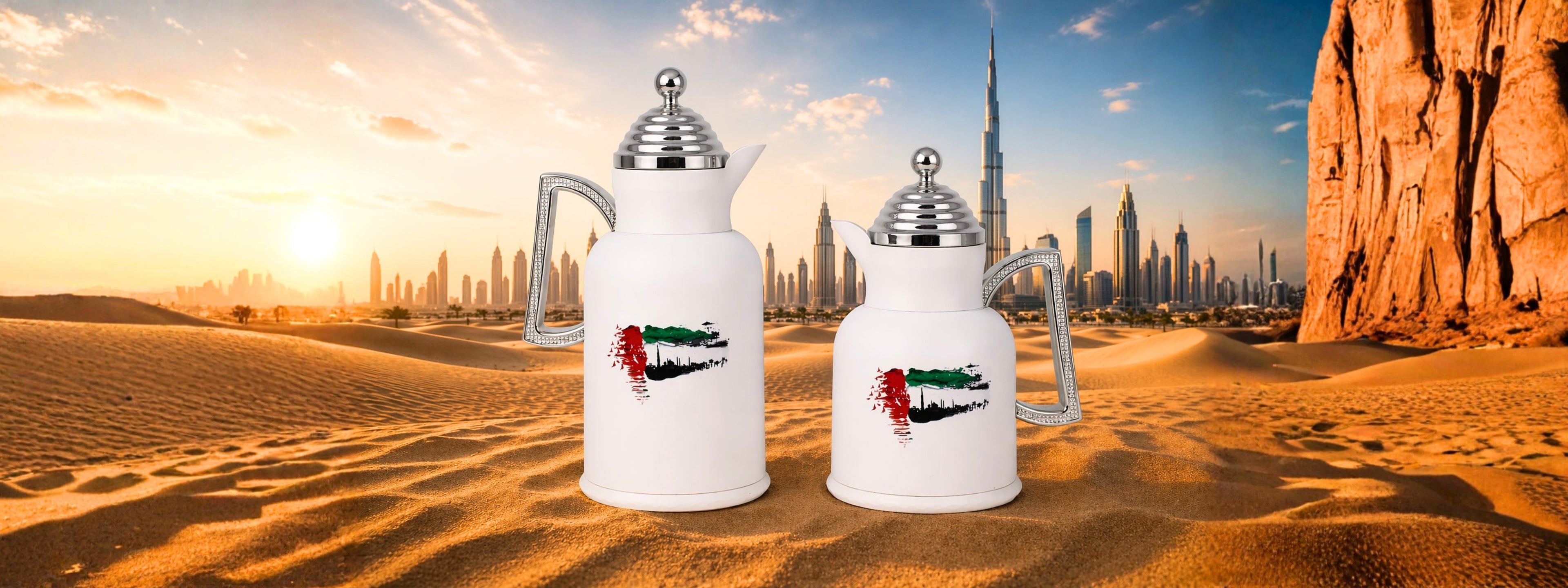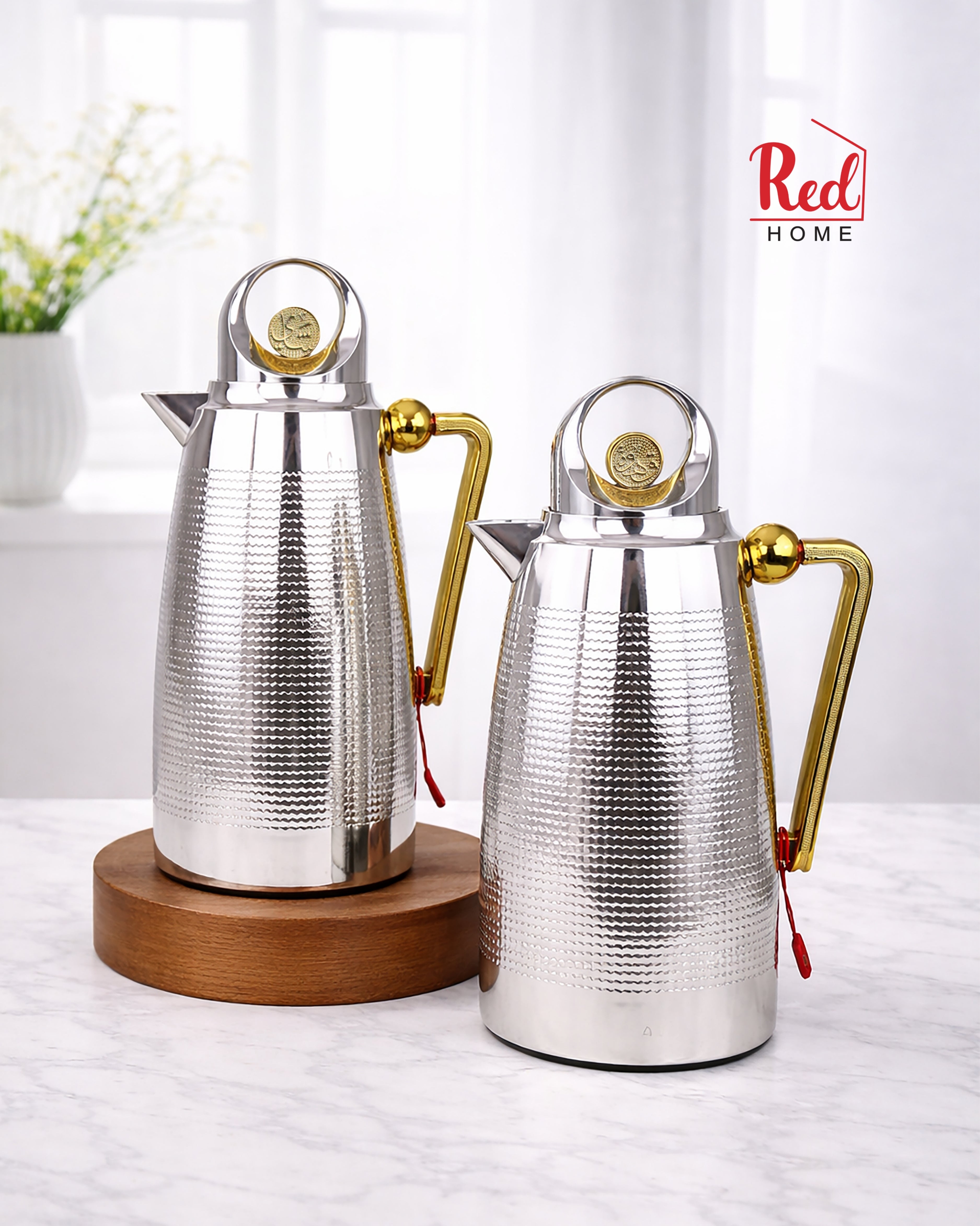 Modern matte-silver vacuum flasks crafted with premium ABS material and elegant chrome accents. Designed for superior heat retention with a high-quality glass liner, offering durability, style, and convenience. Perfect for home, office, and special gatherings.