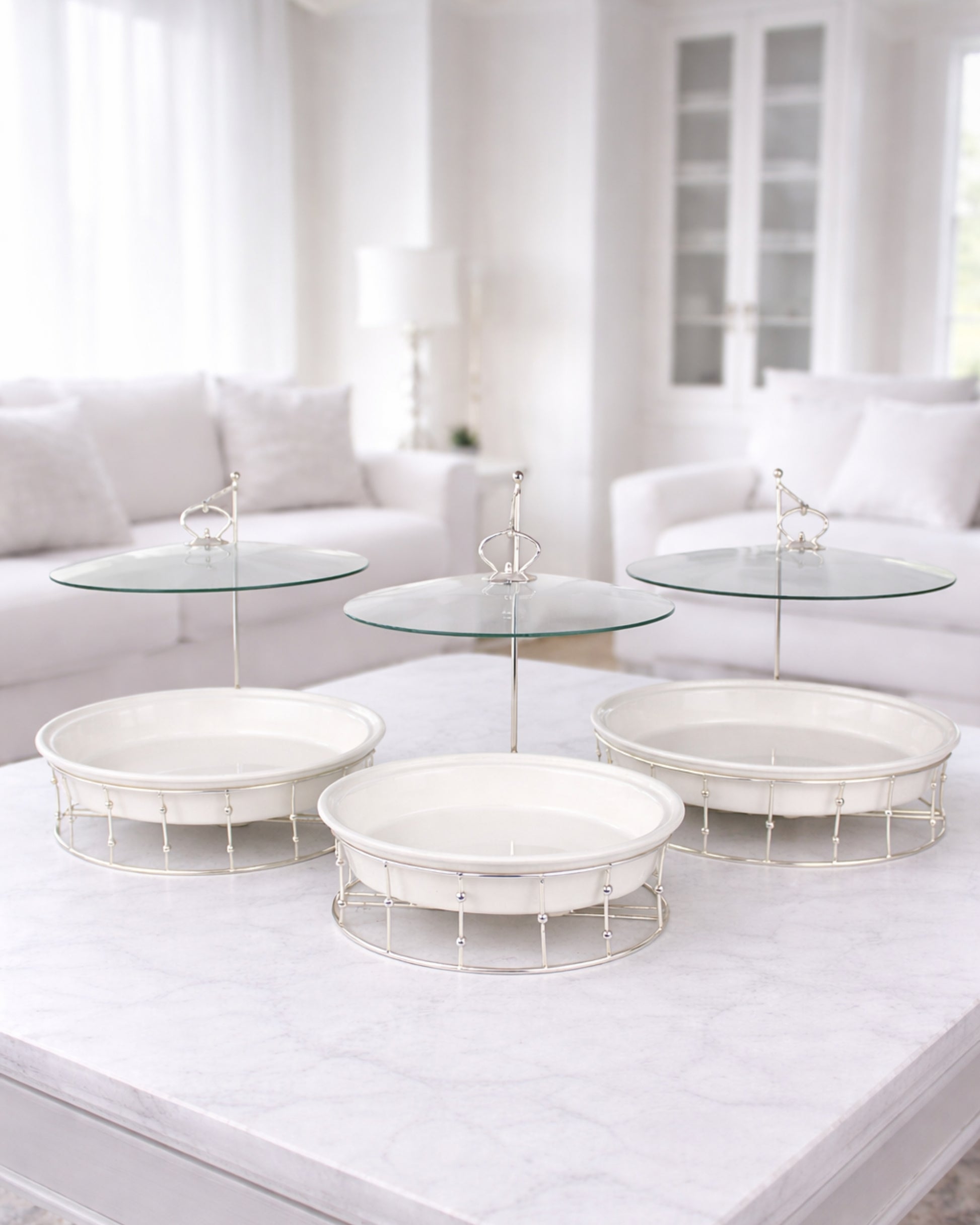Ideal for hotels, banquets, weddings, parties, and stylish home hosting, the elevated design allows easy serving while beautifully displaying desserts, fruits, snacks, and appetizers. Its sturdy construction ensures long-lasting durability, while the refined gold and silver finishes bring a luxurious touch to any buffet or table setup.