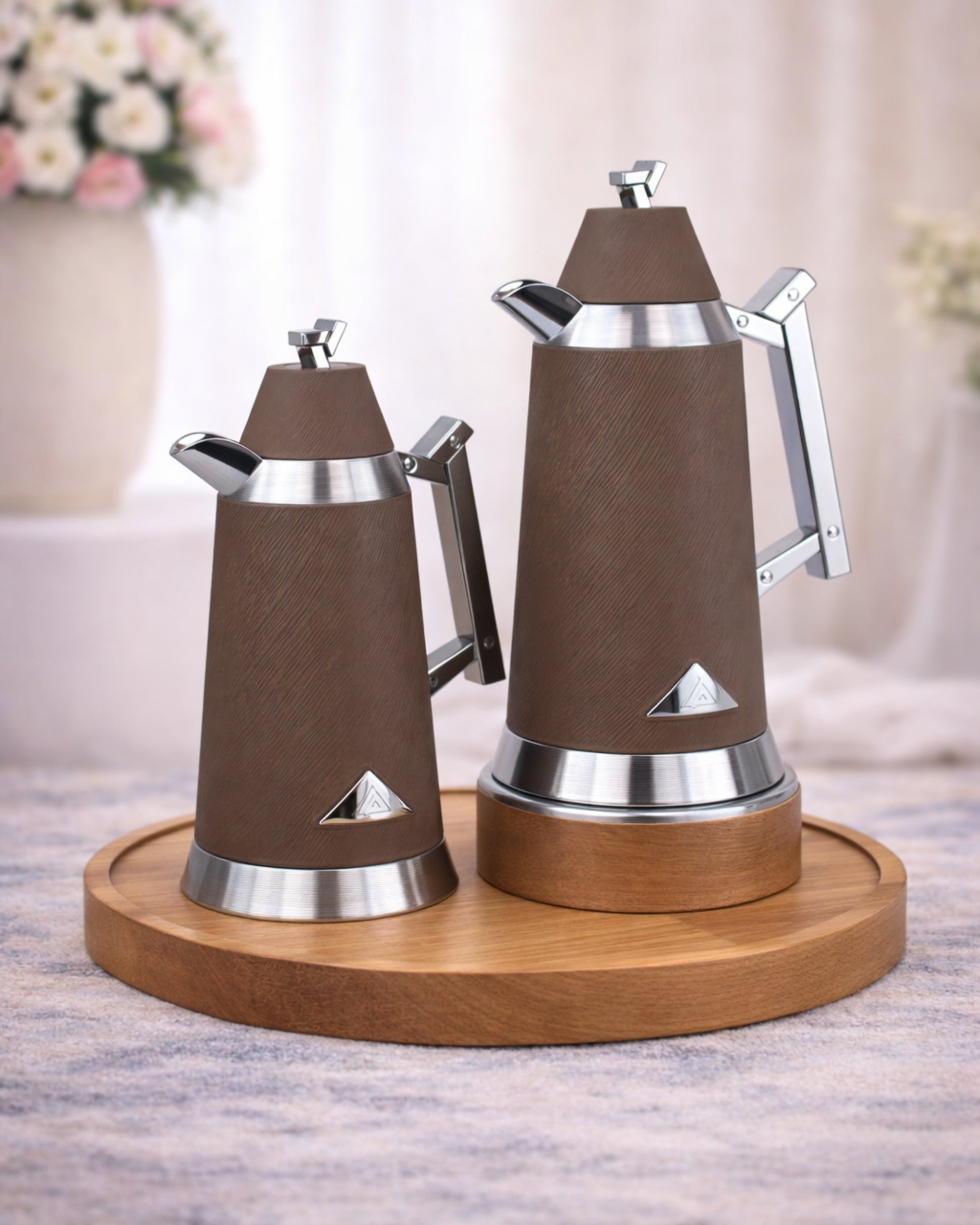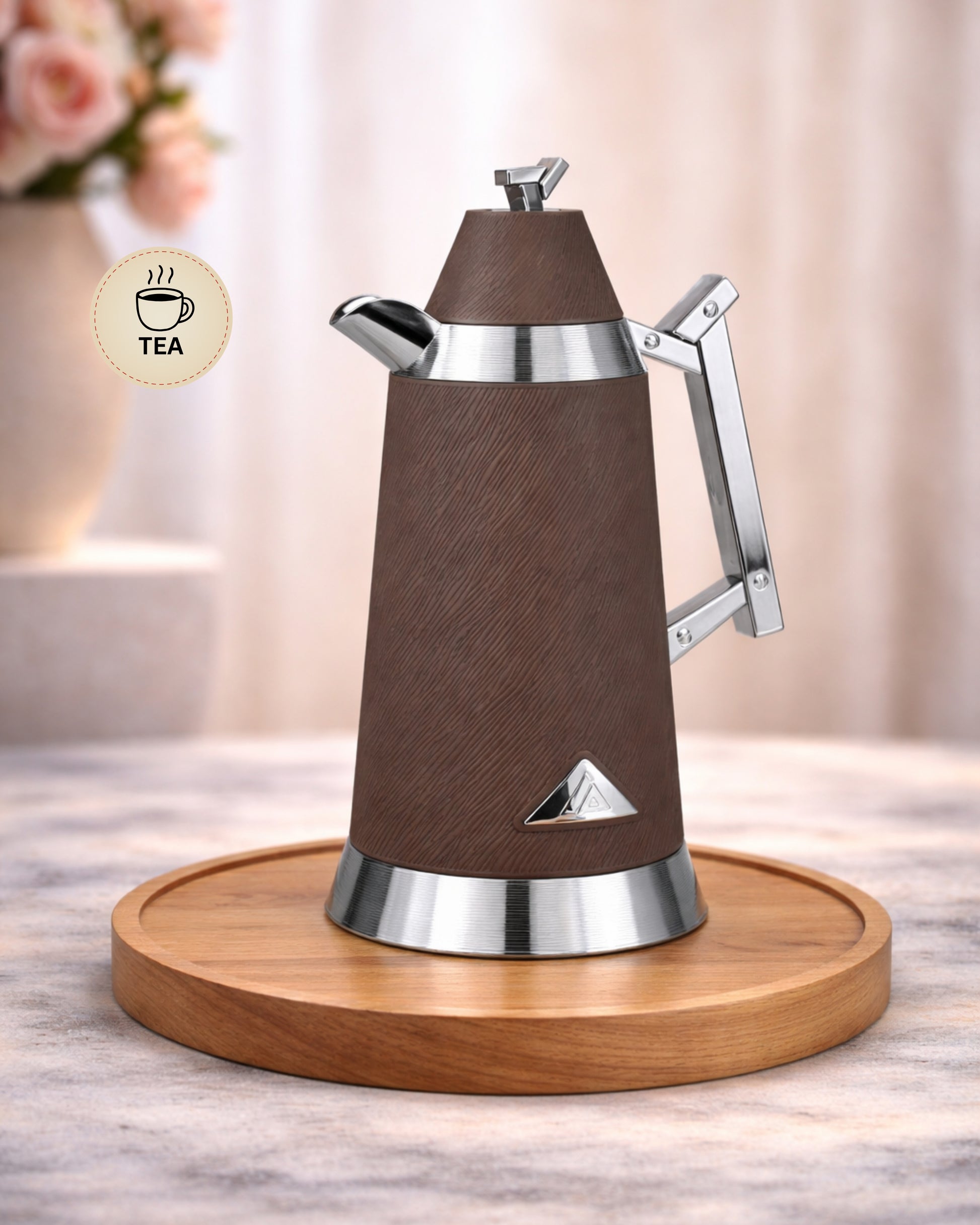 Each flask is built with strong insulation to maintain the temperature of your beverages for long hours — keeping tea, coffee, or hot water fresh and ready to serve. The chrome-finish handle and precision spout ensure smooth, drip-free pouring, while the stylish wooden base adds a refined touch to your table setup.